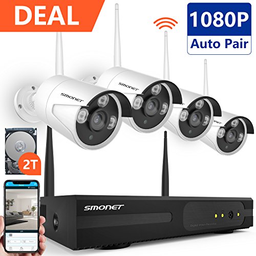 4 Channel 1080P Wireless Security Camera System for Villa, Home, Office, Shop, Warehouse or elsewhere(Indoor/ Outdoor). 2TB Hard Drive Pre-installed. Please Note that this is not Battery Powered Cameras. Wireless Camera System Doesn't Mean You can Use it without Any Cables. Power Supply still Needed to Power on the Cameras and NVR (Smonet doesn't Take Charge of Installation). Powered by Stable Power from nearby Outlets, 24x7 hours Live Surveillance.