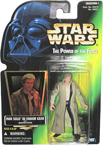 -. Binding : Toy -. Brand : Kenner -. EAN : 0723794862318 -. Feature : Authentic Likeness of Harrison Ford as Han Solo / Approximately 3.75 Inches Tall / Includes Blaster p.i.s.t.o.l Weapon / Released in 1997 - Out of Production / "Holo Foil" packaging variation -. IsAdultProduct : 0 -. Label : Hasbro -. Manufacturer : Hasbro -. PackageQuantity : 1 -. ProductGroup : Toy -. ProductTypeName : TOYS_AND_GAMES -. Publisher : Hasbro -. Studio : Hasbro -. Title : Han Solo in Endor Gear Vintage Star Wars 1996 The Power of the Force Action Figure with Green HoloFoil Backer Card -. UPC : 723794862318