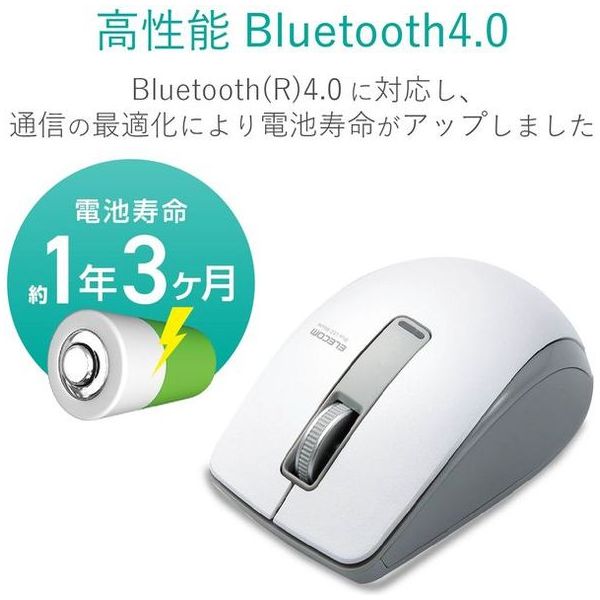 ●省電力性を重視して開発されたBluetooth(R)4.0対応で、電池寿命がアップ 手にフィットする高さで握りやすい、Bluetooth(R)4.0 BlueLEDワイヤレスマウス。