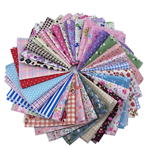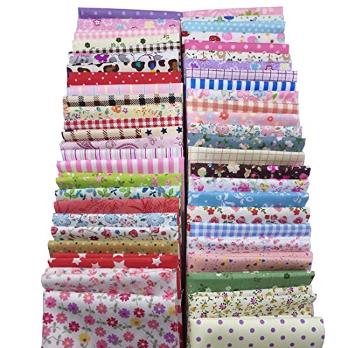 levylisa 50 Pieces Pre Cut Assorted Colours Cotton Printed Fabric Patchwork Fabric Fat Quarter Bundle patchwork Quilting Sewing Fabric Patchwork Flower Dots DIY quilting Handmade Craft 8 x 8 Inches