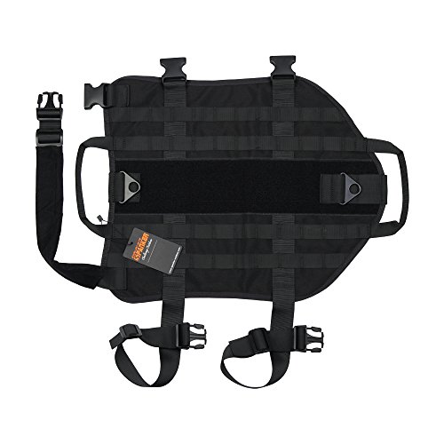 -. Feature : Dedicated materials: the use of 1050D nylon material, the quality of soft and comfortable, UTX fast release plastic buckle & YKK zipper, have with high durability / Design: Fully adjustable strap, with 3 quick release buckles & two top V-shaped buckles, both ends have a handle design, with two connection points for the dog leash, can be more convenient control / Design both sides are Molle system, you can attach additional small equipment, magazine bags, water bottles, With 2 MOLLE webbing on both side,The vest consists of three magazine pouches, two zip pouch, a magic patch pocket(XS, S code has 2 pouches / M, L, XL code has 3 pouches) / Vest Neck Strap with a soft mat, the inside is equipped with a breathable mat to prevent bruising the neck of the dog, the magic patch panel, you can attach your favorite patch logo, we care more about your dog wearing comfortable (vest includes 3 patch) / Available in 5 sizes and 4 colors, suitable for large, medium and small dogs, choose the size and color matching your dog, can be used for outdoor sports, training, travel, military and so on.(see detailed picture)