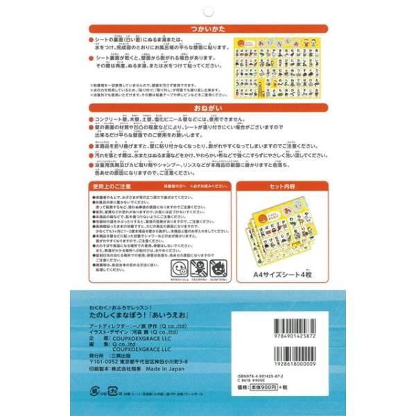 【商品説明】 定価(税込み):972円 値引き:5% OFF お風呂の壁にピタッとはれるお風呂ポスター。たのしく自然に五十音を覚えられる工夫がいっぱい! 濁音・半濁音も分かりやすく掲載。ゲーム感覚で親子でいっしょに楽しめる。 バーゲンブック 新品 特価 格安 子ども ドリル 未就学児向け絵本 もじ すうじ 絵本 えほん 未就学 ゲーム 就学 音 あいうえお | |