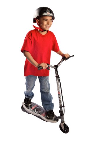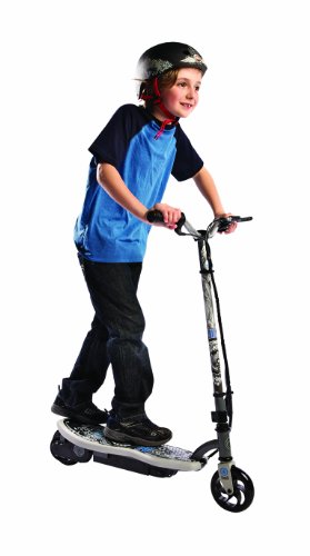 - Feature : Rechargeable electric scooter. Includes 24 volt SLA (sealed lead acid) rechargeable battery system, Single charge run time of up to 45 minutes, UL rated charger included with charge completion indicator light, 100 watt motor / Power on/off toggle switch with LED indicator light, Maintenance free belt drive system provides instant and smooth power / Variable speed twist grip throttle control, 140mm X 30mm cast polyurethane wheels / Composite oversized deck allows for multiple foot stance positions and increased control, Maximum speed of 10 mph / Ages 8 and up, 125lb maximum weight, Great graphics