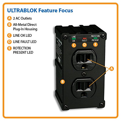 Tripp Lite Isobar 2 Outlet Direct Plug-in Surge Protector/Suppressor Diagnostic LEDs (ULTRABLOK)