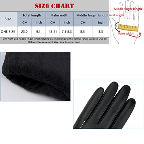 Binding : Apparel Product Description Description: 1.The mitten is free size which fits most people. 2.Fashion Comfortable gloves keep your fingers warm enough. 3.Windproof, warmth, drying, breathable characteristics,Always feel comfortable. 4.Machine washable, Hand wash would be better, hang dry. 5.Perfect Dress Accessory for any Special Occasions. Product Specification: 1.Quantity: 1 pair 2.Color: As the picture shows (Note: The inside color is random) 3.Size: One size 4.Material:PU Leather Note: 1.Only gloves, other Accessories are not included. 2.Manual measurement may be some deviation, hope to understand, please refer to product-based. 3.Because each computer display different colors, may be related to physical and picture, hope to understand. Package Content: (Send without retail package) 1 pair gloves