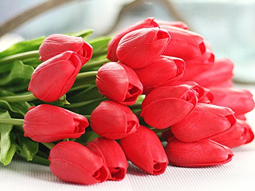 The tulip flowers are made of high quality PU,very easy to clean