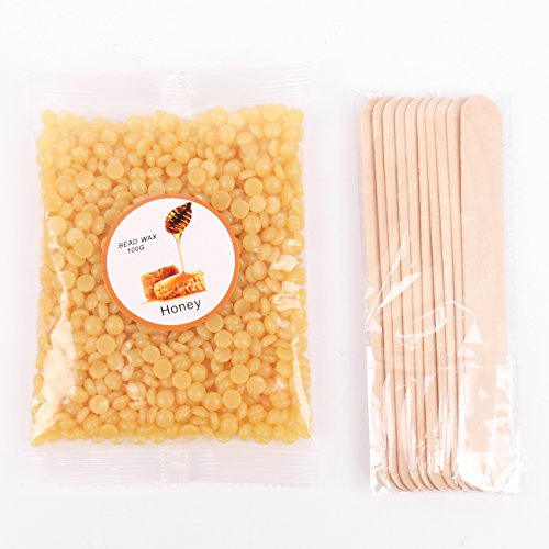 Wax Beans, 10.5 Ounces Natural Honey-flavored with 10pcs Wooden Spatula Body Hair Removal Painless Waxing Ideal for Removal of Bikini and Body Hair on All Skin Types (Yellow)