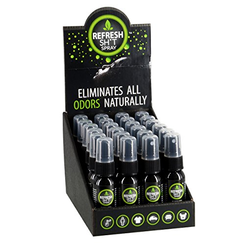 Studio : Royal Aquatic LLC Publisher : Royal Aquatic LLC Binding : Misc. Product Description The All Natural Odor Eliminator 24 Unit Display by RefreshSht features 1 fl oz sample sized spray bottles to display on the counter. It easily promotes sales, capturing the curiosity of the customer and their attention for the product. Clean your home chemical-free with the RefreshSht All Natural Odor Eliminator! It is naturally Anti-Infectious, Anti-Fungal, Anti-Microbial, Anti-Bacterial and Anti-Viral, made with natural ingredients and herbals extracts. The proprietary blend of essential oils does not mask, but instantly eliminates scents your dog or cat may have left behind. This includes odors from urine, the kitty litter box, carpets and upholstery. Unlike 86% of other air fresheners which contain cancer-causing chemicals, RefreshSht gives you the opportunity to choose the healthier and more humane path. RefreshSht does not test on animals, and is BPA, phthalate, formaldehyde, and dichlorobenzene free; therefore, it is safe to use even around your pets! Each RefreshSht All Natural Odor Eliminator comes in a convenient spray bottle. This will allow you target bad smelling areas around your home directly. Choose from our selection of 8 fl oz, or 16 fl oz bottles. 0