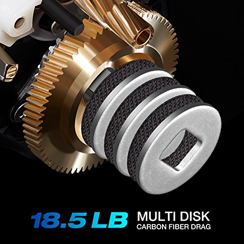 POWERFUL - Precise brass gears paired with 3 Premium carbon fiber drag washers provide an ultra-strong 18.5LBs drag system with power to handle the big ones that you are after