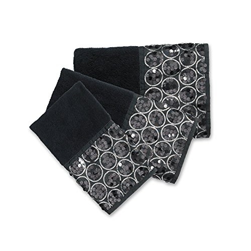 Royal Bath Bedazzled Bling Black Set of 3 100% Cotton Towels: 1 Bath Towel (45" x 25"), 1 Hand Towel (26" x 16") and 1 Washcloth (18" x 11")
