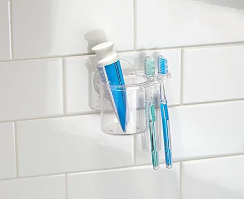 - Suction toothbrush center uses 2 strong suction cups to adhere to smooth surfaces for convenient storage of up to 3 toothbrushes and a tube of toothpaste