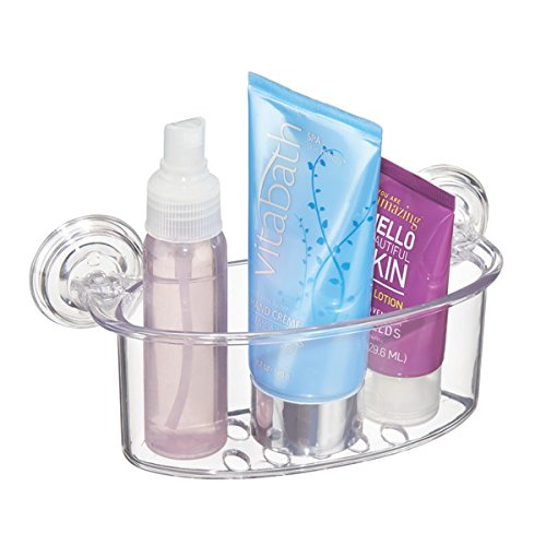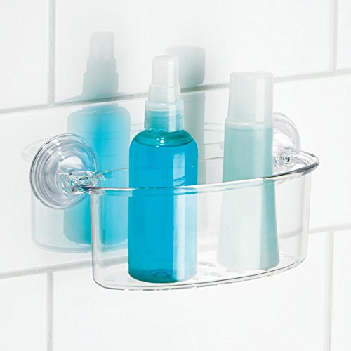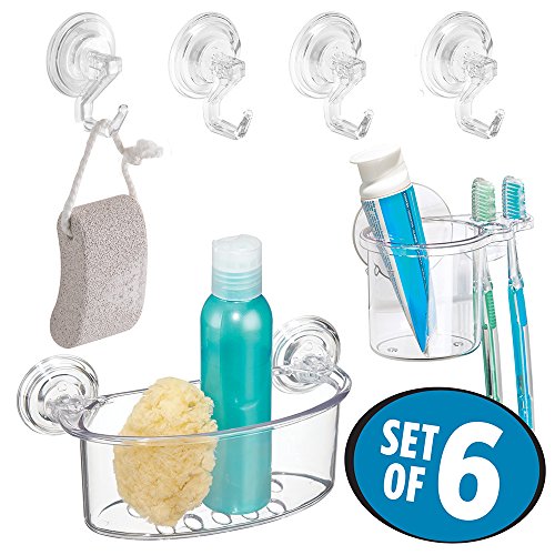 mDesign Suction Storage Set for Bathroom, Suction Storage Hooks, Suction Shower Basket, Suction Toothbrush Center - Set of 6, Clear