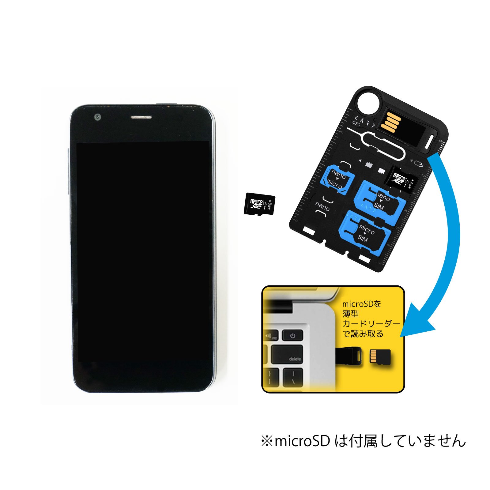 ● Easy to lose SIM card adapter and removal pin set on one card