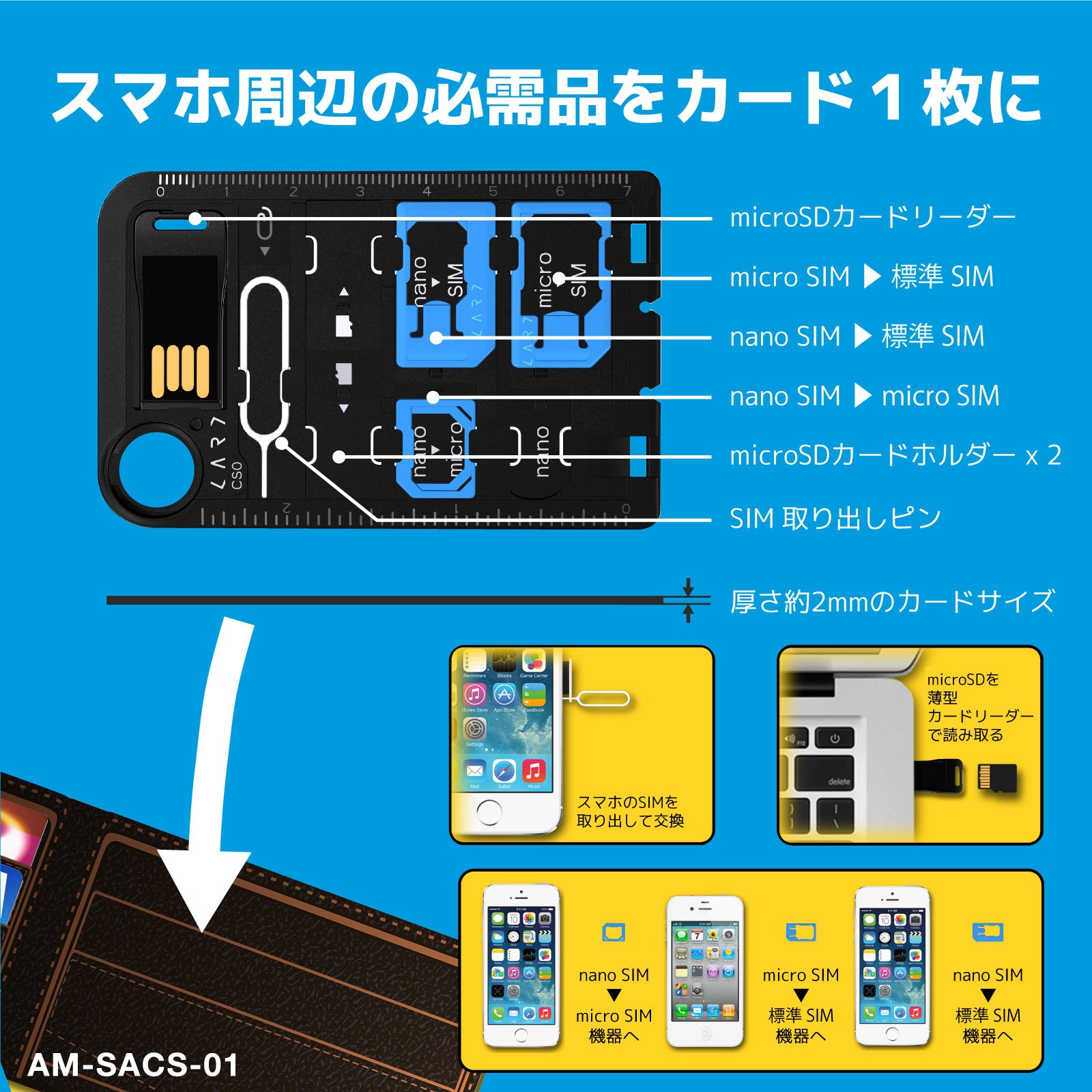 ● Thin card reader replaces USB memory