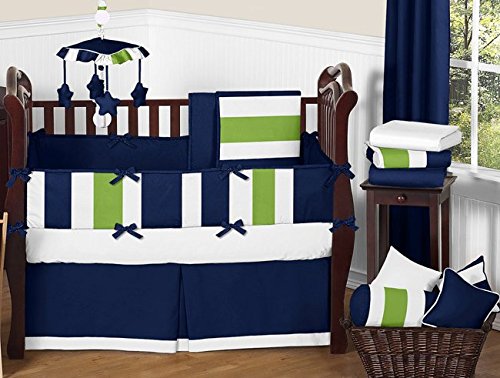 Navy Blue, Lime Green and White Fabric Memory/Memo Photo Bulletin Board for Stripe Collection