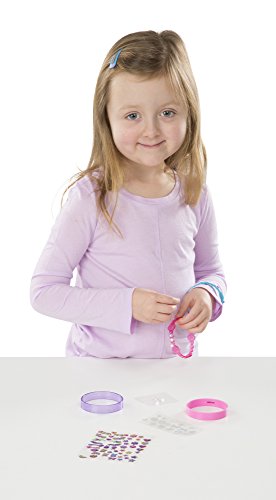 Kids can design, make, and wear their own fabulous bracelet styles with this all-inclusive craft kit! Shimmering gel stickers, sparkling glitter stickers, and stick-on pearls make it easy to customize the four bangle-style bracelets with a gorgeous array of shapes and designs. Kids can layer on the stickers or create one-of-a-kind patterns—whatever the design, the results always look fabulous!Feature