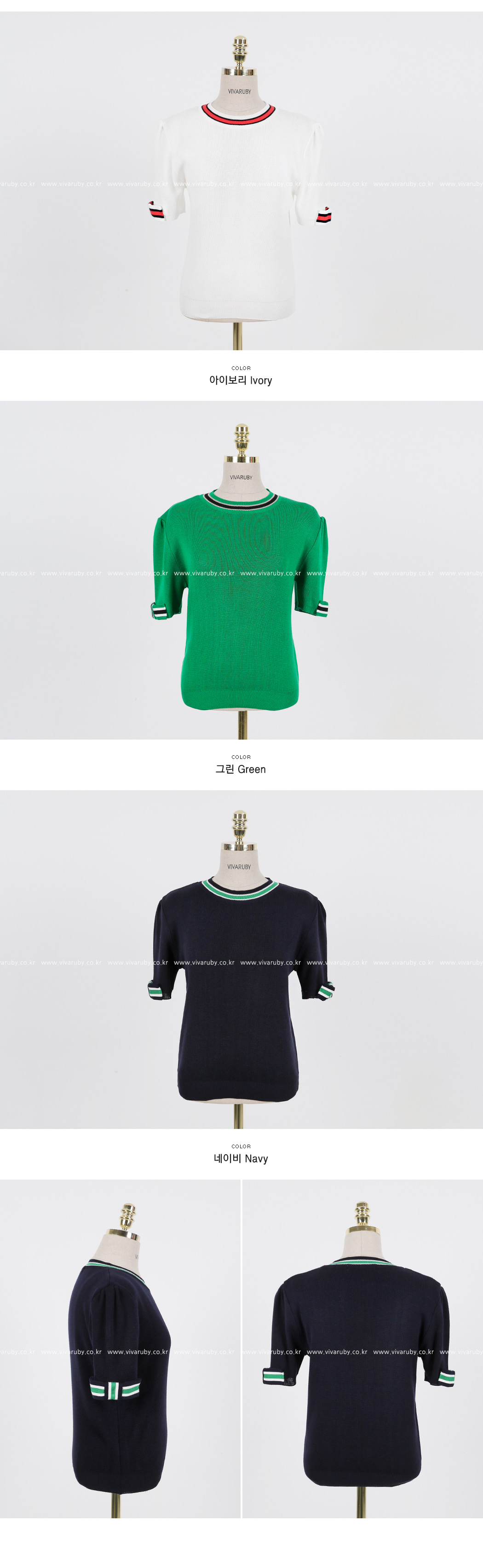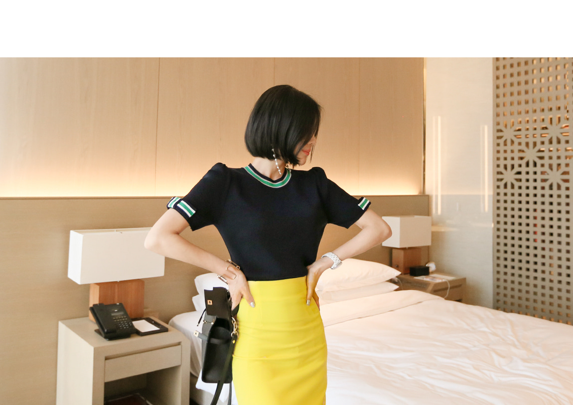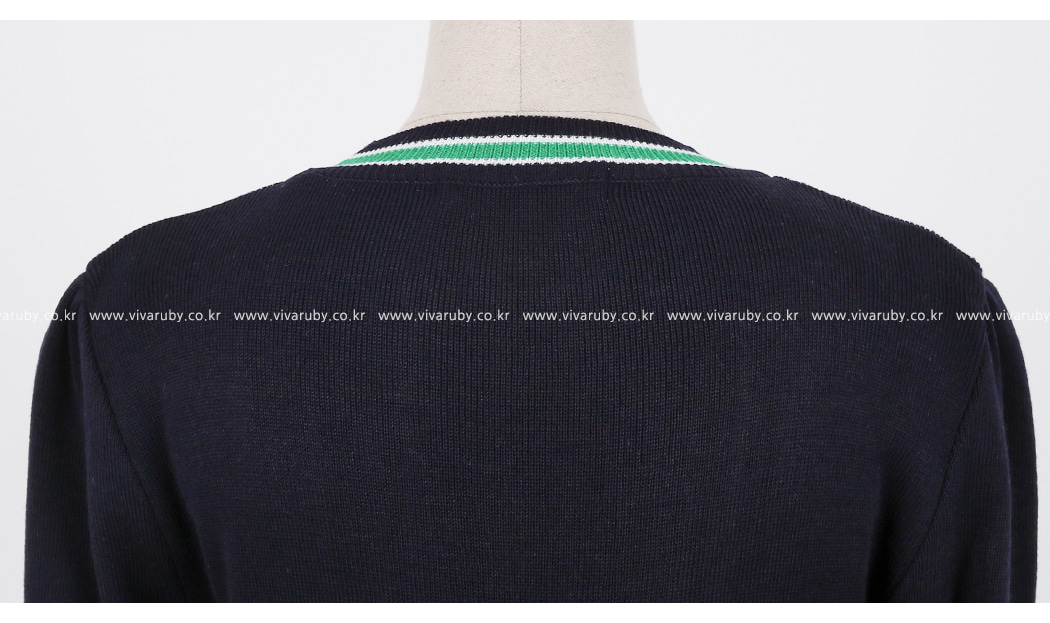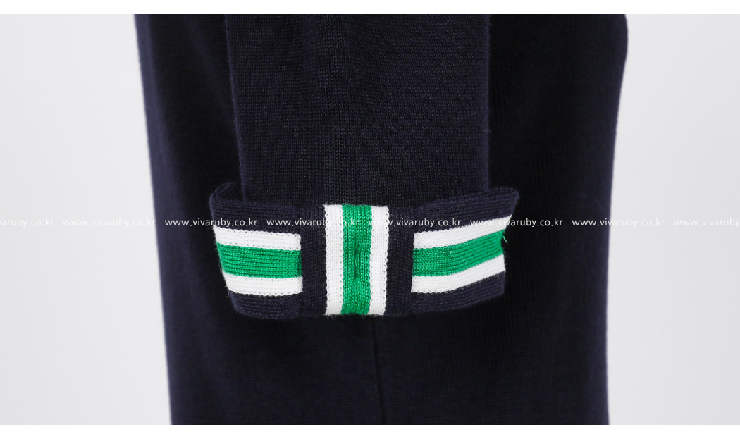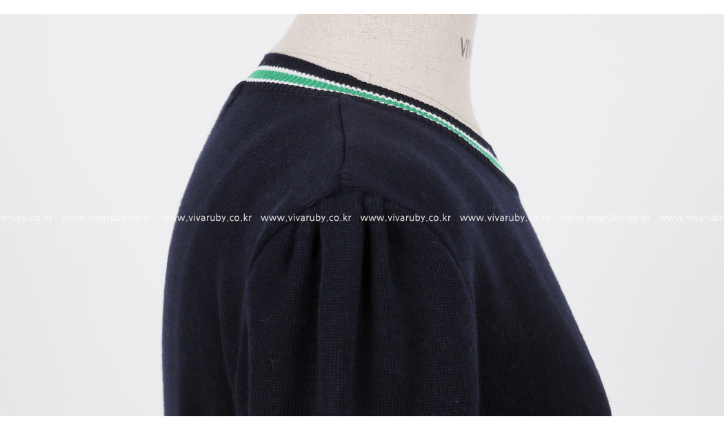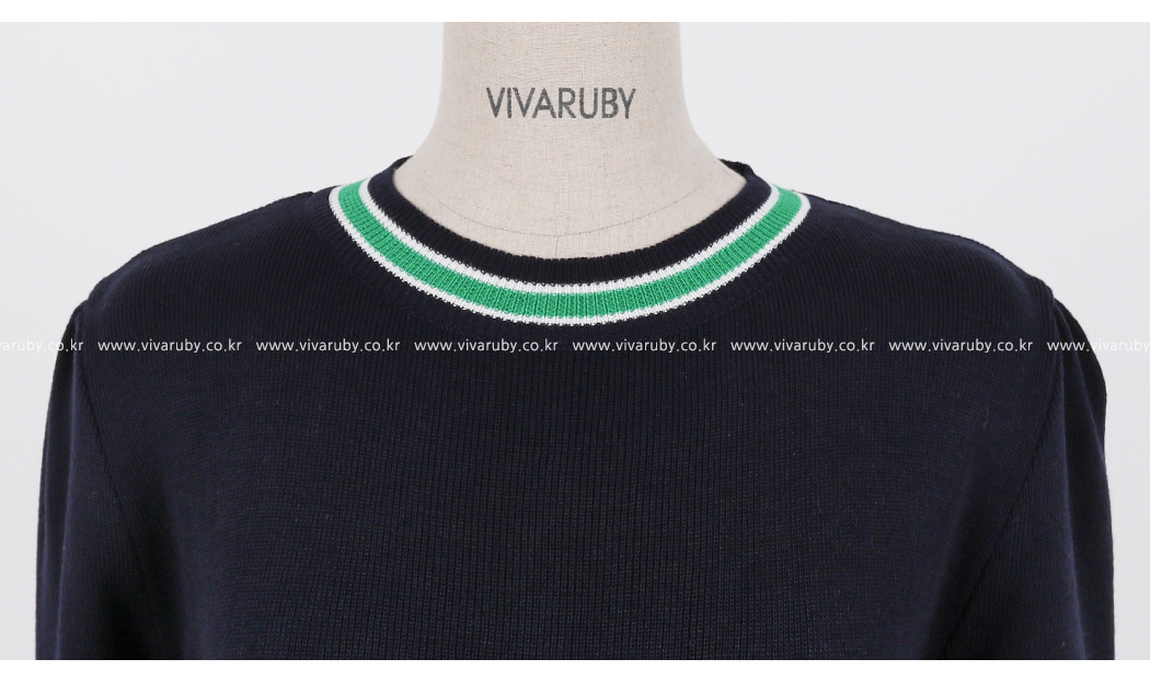 네크라인과 소매의 배색 디테일로 트렌디한 포인트를 주었어요