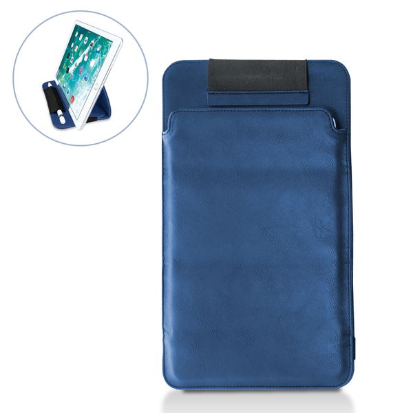 ●高級感あるソフトレザー素材がキズから守り、シンプルな形状でカバンに入れてもかさばらず、本体を折り曲げることでスタンド形状になる、ペンホルダーが付いたスリップインポーチです。