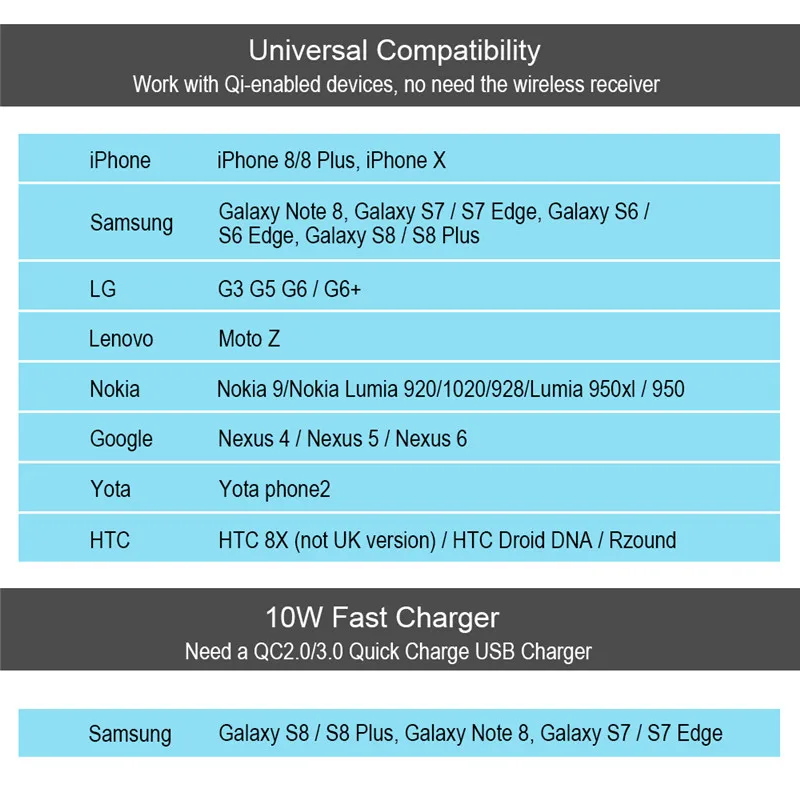 Functional 2:For iPhone X 8 Plus Samsung Note 8 S9 Fast Wireless Charging