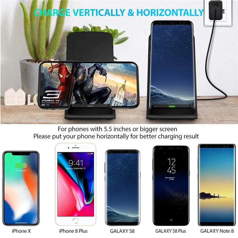 Functional 1:For iPhone X 8 Plus Samsung Note 8 S9 Qi Wireless Charging