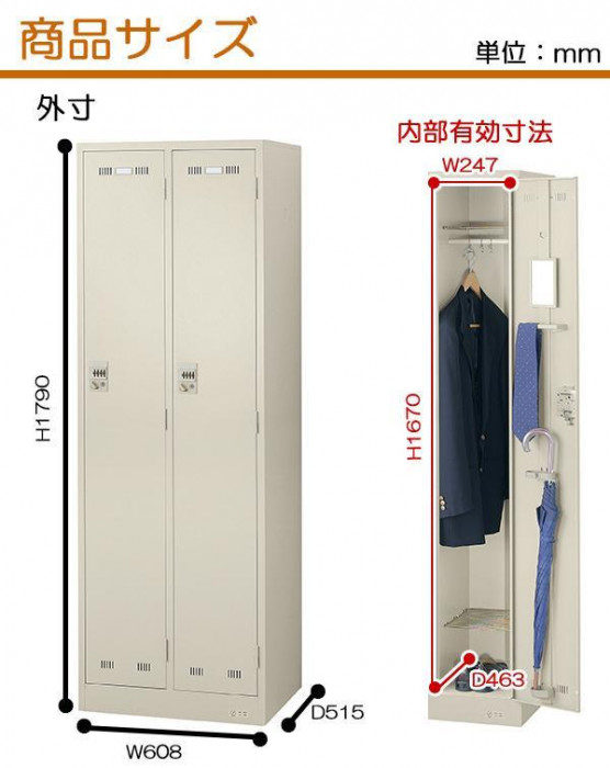 | 仕様 | ●ダイヤル錠タイプ ●完成品 ●グリーン購入法適合品 ●耐荷重 ハンガーパイプ:20kg、網棚:各10kg |