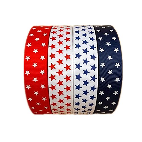 20 Yards (4 X 5yd) 1" Patriotic Star Printed 4th of July Grosgrain Ribbon