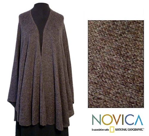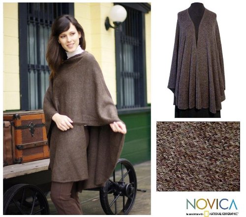 About this item: Cut like a cape, this generous wrap is knitted in a smooth jersey tweed. A beautiful and subtle medley of deep, rich browns distinguishes this versatile design by Alfredo Falcon. He finishes it with a hand-crocheted border. Alpaca wool and acrylic blend means minimal shedding. 36.0" L x 57.0" W 71.0" L - Do not use a dryer