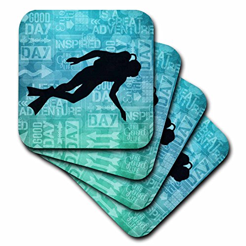 3dRose Scuba Diver Silhouette in Blue Bubbles with Adventure Word Art - Ceramic Tile Coasters, set of 4 (cst_173214_3)