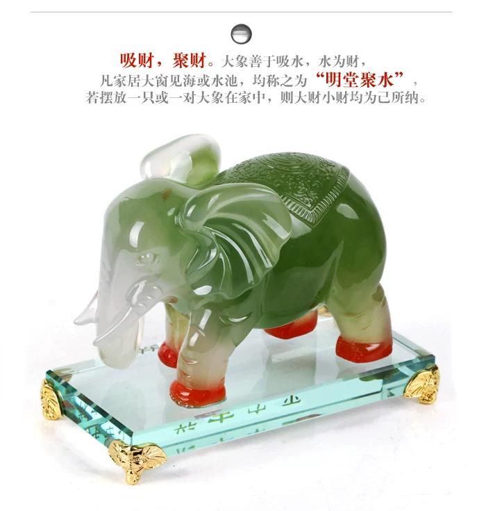 “山主人丁,水主财。水为财,吸水即聚财,大象乃吸水聚财之祥物。门为财口,窗为财眼,象鼻子摆放对门或对窗均为招财之势!加之大象性情驯良,有和谐顺宅之意。此物乃调剂居家风水之上品!”