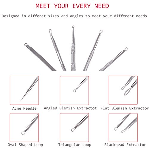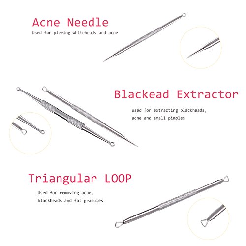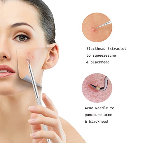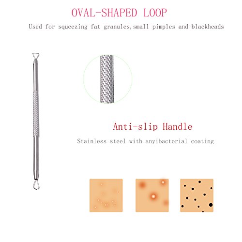 - Anti-microbial Double-side: contains 5 different practical double sided extractors,Perfect for extracting pimples, blackheads, acne, comedones,blemishes and other hard-to-reach impurities.