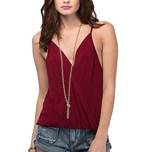 -. Title : Mixmax Women Sexy Spaghetti Strap Cross Collar Shirt Cotton Vest Top (Wine red)