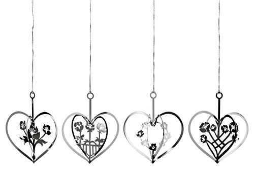 Silver Hearts with Flowers - Pack of 4