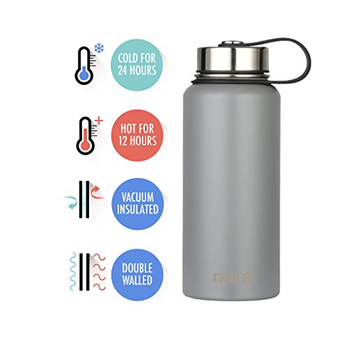 MIRA 32 oz Stainless Steel Vacuum Insulated Wide Mouth Water Bottle | Thermos Keeps Cold for 24 hours, Hot for 12 hours | Double Wall Powder Coated Travel Flask | Gray