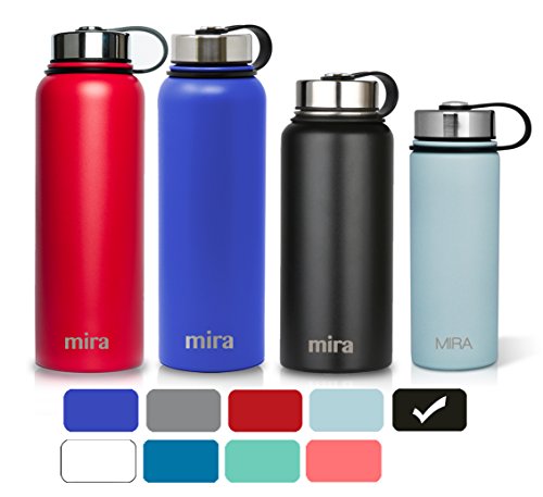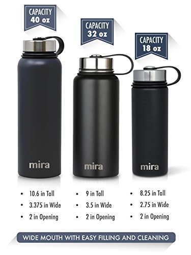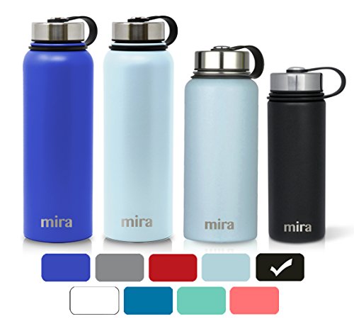 MIRA 40 Oz Stainless Steel Vacuum Insulated Wide Mouth Water Bottle | Thermos Keeps Cold for 24 hours, Hot for 12 hours | Double Walled Powder Coated Travel Flask | Black