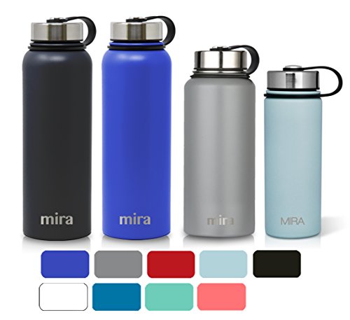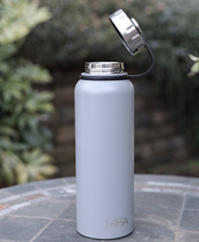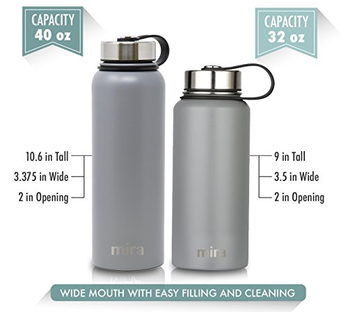 MIRA 40 Oz Stainless Steel Vacuum Insulated Wide Mouth Water Bottle | Thermos Keeps Cold for 24 hours, Hot for 12 hours | Double Walled Powder Coated Travel Flask | Gray