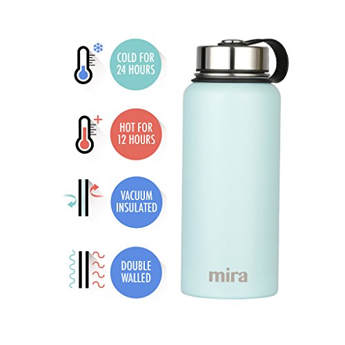 MIRA 32 Oz Stainless Steel Vacuum Insulated Wide Mouth Water Bottle | Thermos Keeps Cold for 24 hours, Hot for 12 hours | Double Wall Powder Coated Travel Flask | Hawaiian Blue