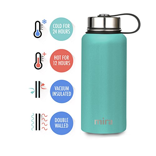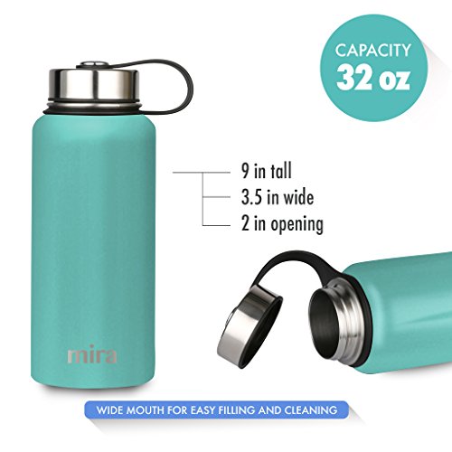 MIRA 32 Oz Stainless Steel Vacuum Insulated Wide Mouth Water Bottle | Thermos Keeps Cold for 24 hours, Hot for 12 hours | Double Wall Powder Coated Travel Flask | Teal