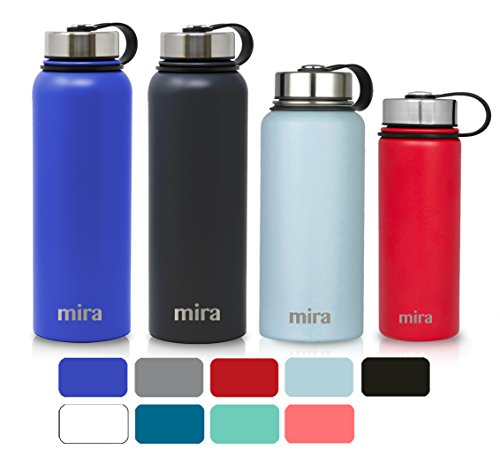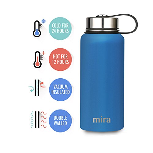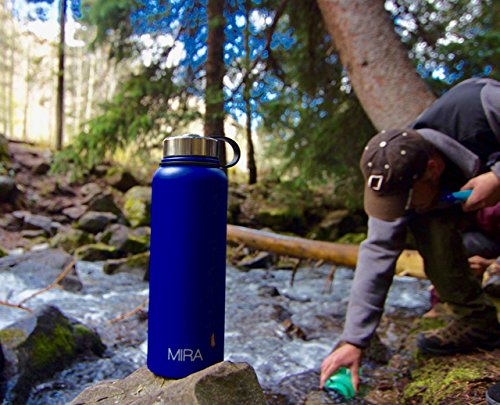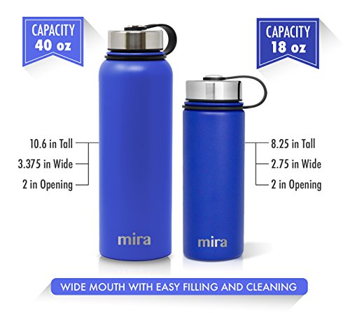 MIRA 40 Oz Stainless Steel Vacuum Insulated Wide Mouth Water Bottle | Thermos Keeps Cold for 24 hours, Hot for 12 hours | Double Walled Powder Coated Travel Flask | Blue