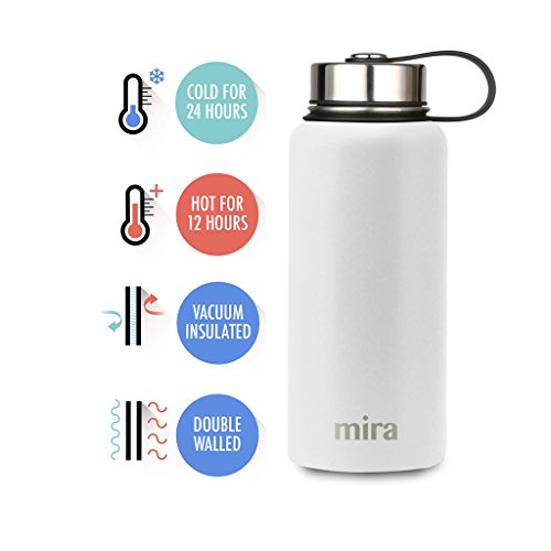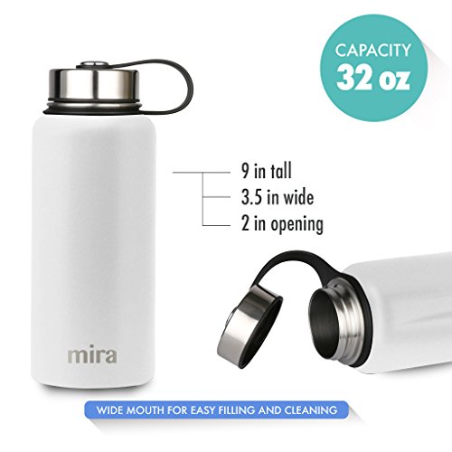 MIRA 32 Oz Stainless Steel Vacuum Insulated Wide Mouth Water Bottle | Thermos Keeps Cold for 24 hours, Hot for 12 hours | Double Wall Powder Coated Travel Flask | White