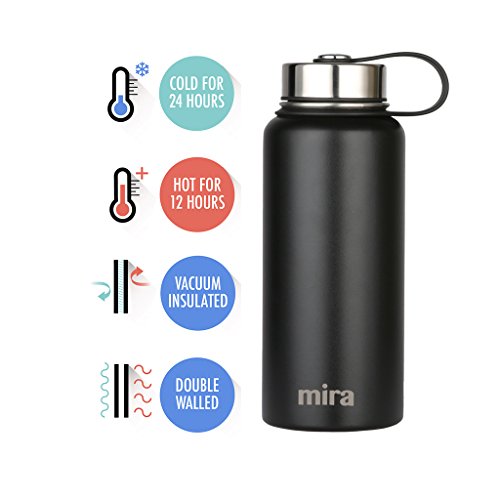 MIRA 32 oz Stainless Steel Vacuum Insulated Wide Mouth Water Bottle | Thermos Keeps Cold for 24 hours, Hot for 12 hours | Double Wall Powder Coated Travel Flask | Black