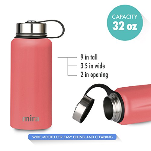MIRA 32 Oz Stainless Steel Vacuum Insulated Wide Mouth Water Bottle | Thermos Keeps Cold for 24 hours, Hot for 12 hours | Double Wall Powder Coated Travel Flask | Coral