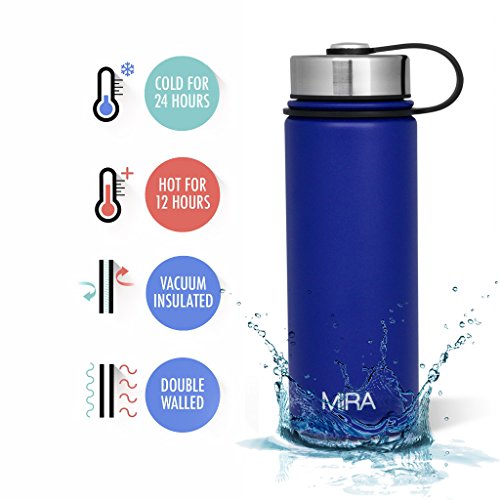 MIRA 18 Oz Stainless Steel Vacuum Insulated Wide Mouth Water Bottle | Thermos Keeps Cold for 24 hours, Hot for 12 hours | Double Walled Powder Coated Travel Flask | Blue