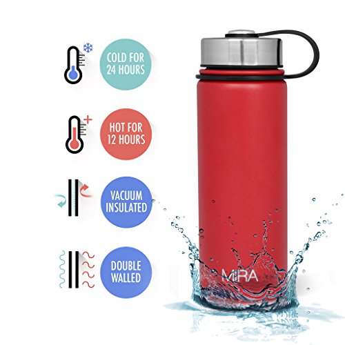 MIRA 18 Oz Stainless Steel Vacuum Insulated Wide Mouth Water Bottle | Thermos Keeps Cold for 24 hours, Hot for 12 hours | Double Walled Powder Coated Travel Flask | Red