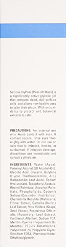 Serious GlyPeel [Peel-off Mask] is a significantly active glycolic gel that removes dead, dull surface cells and allows new healthy ones to take their place. With antioxidants to protect and botanical extracts to calm. Key Performance Ingredients Glycolic Acid: Exfoliates skin to improve signs of photo damaged skin. Antioxidant Blend: An extremely potent combination of antioxidants, including Camellia Oleifera Extract, Chamomile Recutita (Matric aria) Flower Extract, Tocopheryl Acetate and Vitis Vinifera (Grape) Seed Extract and Rosmarinus Officinalis (Rosemary) Leaf Extract, helps to defend the skin against the signs of free radical damage and provides calming properties. Aloe Barbadensis Leaf Juice: Facilitates the natural process of exfoliation. Also calms and soothes the skin, reducing the signs of puffiness and irritation. Cucumis Sativus (Cucumber) Extract: Facilitates the natural process of exfoliation. Also calms and soothes the skin, reducing the signs of puffiness and irritation. Sodium Hyaluronate: A powerful humectant, deeply hydrates and provides an immediate moisturizing boost.Feature