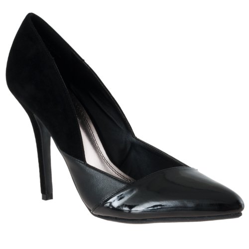 Binding : Apparel Product Description Mix it up a bit with these "Momentum" mixed-media high heels by Riverberry. The microsuede, faux leather, and glossy patent finish materials come together into a shoe that is outstanding. A pointed toe and stiletto heel create an alluring look that is ideal worn with your favorite skirt, dress, suit, or even formal. Finished with tonal topstitching and a slightly padded footbed, these pumps take shape to become a wardrobe favorite. Available in black color option. 0