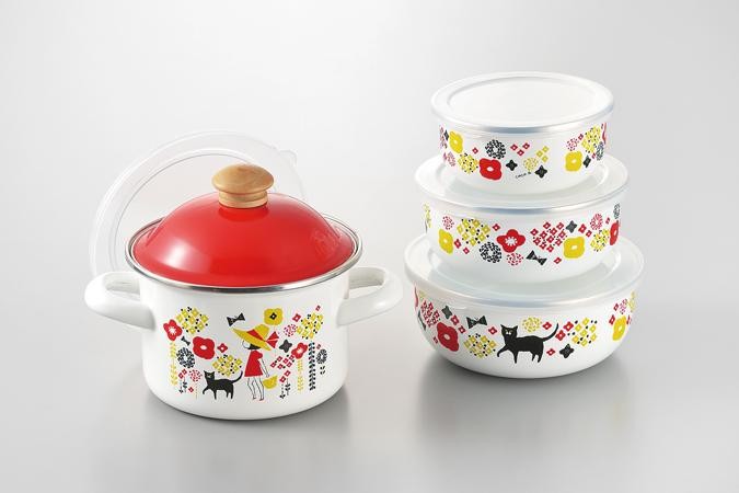 | カラフルなデザインが可愛いホーローポット&ボウルセット。 |