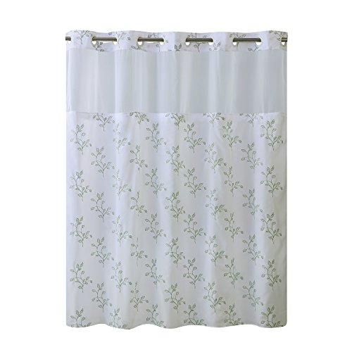 Hookless RBH40MY028 Spring Leaves Shower Curtain with Peva Liner - Bright White