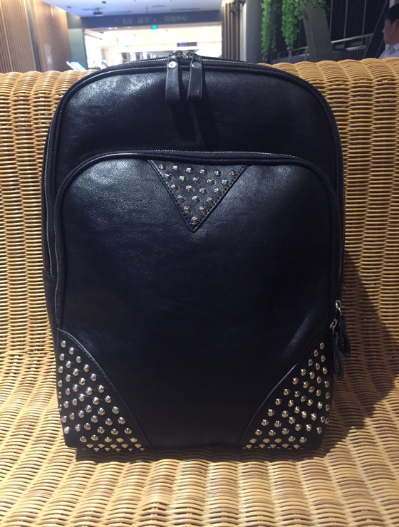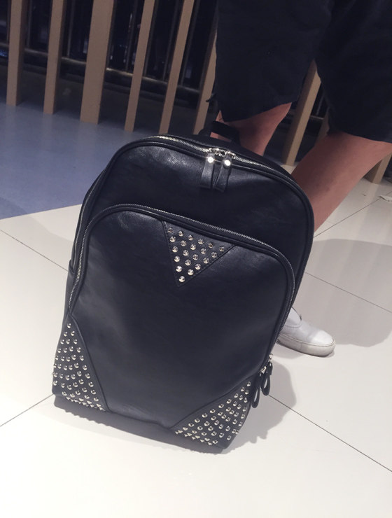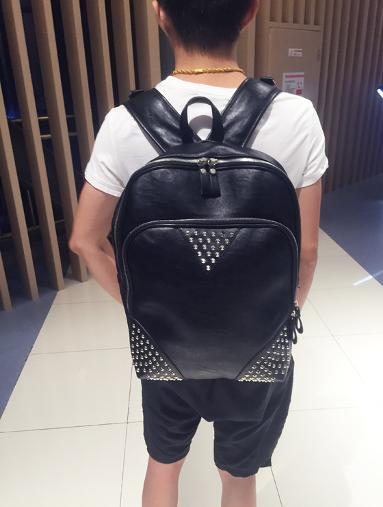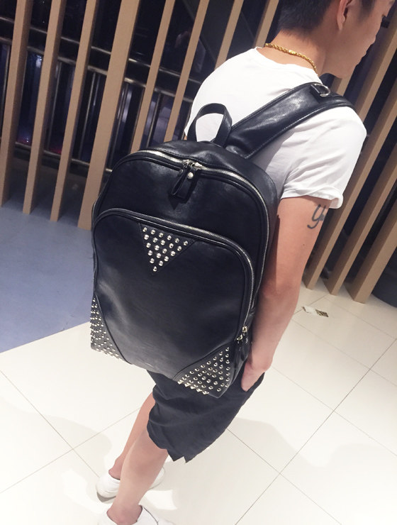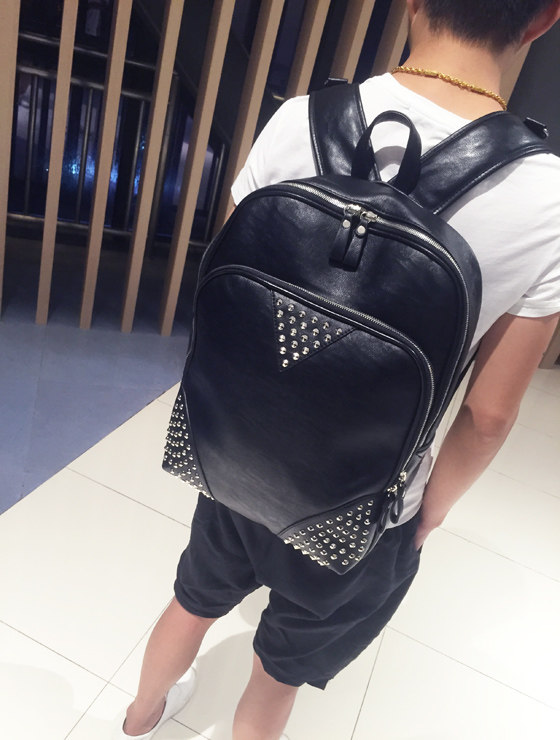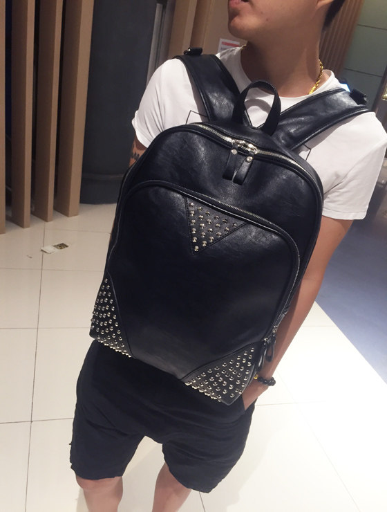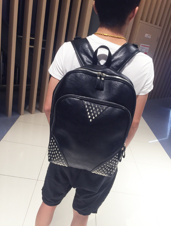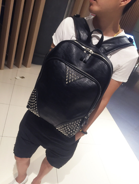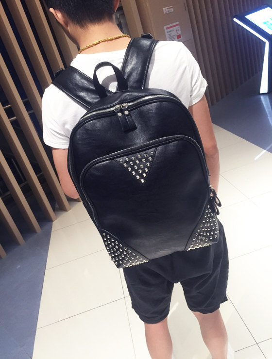 新款潮流男士双肩包韩版个性铆钉书包时尚背包男包朋克风旅行包包