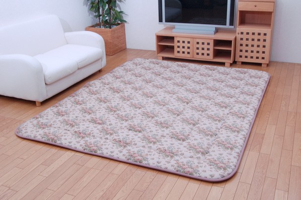 エレガンスな装いのボリュームタイプのラグです。重厚な質感と、まるで絵画のような繊細な柄を表現できるゴブラン織りで仕上げました。中材にはクッション性にこだわった国産の固綿40mmを使用しています。十分な弾力性があるのでフローリングでのご使用にも最適です。遮音特級LL-30を取得しています。床下への騒音も軽減します。また、こたつと併用するとこたつの熱を床下へ逃しにくくなるので省エネ効果もあります。