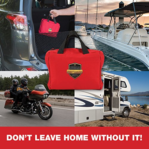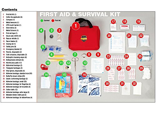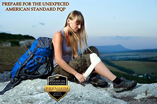 Studio : American Standard PQP Publisher : American Standard PQP Product Description American Standard PQP 2-in-1 All-Purpose First Aid / Outdoors and Wilderness Survival Kit. Designed with your safety and convenience in mind, this travel-friendly, lightweight emergency preparedness bag ensures you're ready and properly equipped to handle any situation. FDA Approved and Exceeds OSHA and ANSI Standards for up to 25 people. 22 Different First Aid Emergency Medical Supplies (20) Butter Fly Closure Stripes (4) Extra Large Trauma Adhesive Bandages (50) Standard Size Adhesive Bandages (50) Small Size Adhesive Bandages (4) Elbow / Knee Adhesive Bandages (4) Knuckles Adhesive Bandages (4) Fingers Adhesive Bandages (2) Abdominal Bandages (2) Triangle Bandages (2) Elastic Conforming Bandages (12) Alcohol Prep Pads (6) Antiseptic Cleaning Wipes (6) Antibacterial Ointment / Burn Cream (2) Moleskin Blister / Sting Relief Pads (12) Cotton Balls (6) Cotton Tip Applicators (2) Cold Press Ice Packs (4) Disposable Vinyl Gloves (4) Sterile Gauze Pads (1) First Aid Tape (1) Metal Stainless Steel Tweezers (1) Metal Stainless Steel Scissors List of 10 Different Outdoors / Survival Supplies (1) Compass (1) CPR Mask / Mouth Barrier (2) Glow Sticks (1) Rescue Whistle (2) Razor Blades (1) Sewing Kits (8) Safety Pins (2) Emergency Blankets (2) Rain Ponchos (1) First Water-Resistant First Aid Pouch Brought to you by AMERICAN STANDARD PQP Dedicated to bringing you Premium Quality Products with Top-Notch Customer. 100% Money Back Guarantee If you are not complete satisfied with the quality of your first aid / survival kit 0